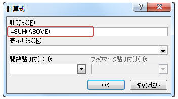 ここでは上のセルの合計を出すので =SUM(ABOVE)とします。