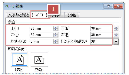 「ページ設定ダイアログ」−「余白」タブで余白を指定する