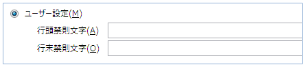 - 「ユーザーレベル」をクリックし「行頭禁則文字」または「行末禁則文字」ボックス