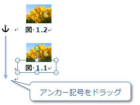 ↑アンカー記号が表示され、「図1.2」の段落に図表番号が配置されていることが分かります。