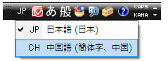 言語バーの「JP」をクリックし、言語を「CH