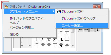 IMEパッドメニューから「アプレットメニュー」−「ユーザー設定」をクリック