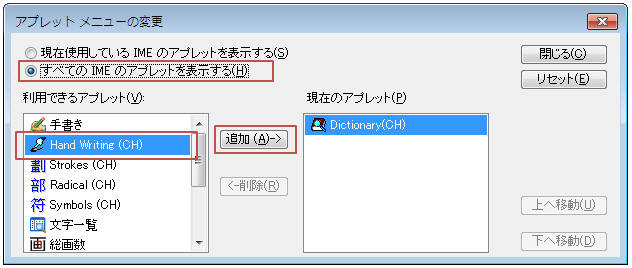 「Hand Writing (CH)」を追加し「閉じる」をクリック