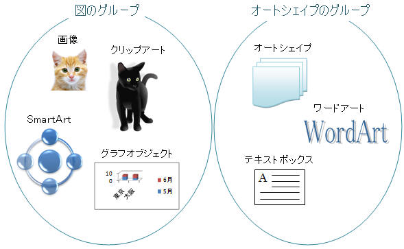 「文字列の折り返し」が行内になっているオブジェクトは複数選択できません。行内以外に変更