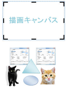 各オブジェクトを切り取り、描画キャンバス内をクリックして貼り付けていく