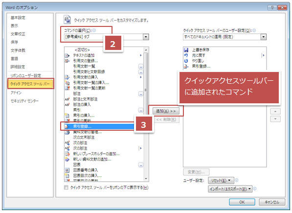 コマンド(機能)を選択し「追加」をクリックし「OK」で閉じる