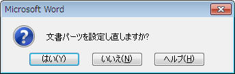 「文書パーツを設定し直しますか?」と表示されたら「はい」をクリック
