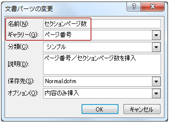 ■ クイックパーツのプロパティ(ギャラリーやパーツ名)を変更したい場合