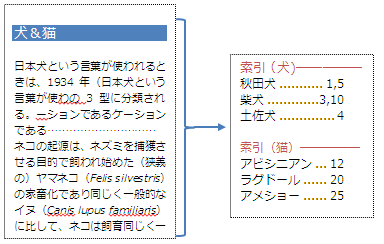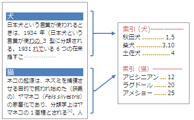 文書内に複数の索引を作成する場合、2通りの状況が想定されます。
