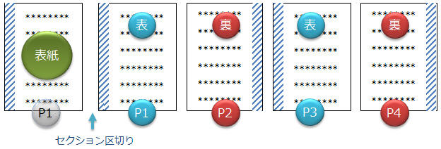 ★ここでは例として、表紙にP1、P1、P2、P3…となるように設定します。(表紙のページ番号を操作)