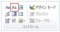 「開発」タブをクリックし「デザインモード」ボタンをクリック(※開発タブが表示されていない場合はこちら)