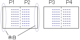 例えば、A4横・袋とじの設定でとじしろを多く取り、P1〜P4を印刷したとします。