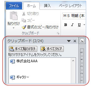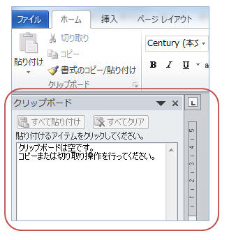 クリップボードに2個以上のアイテムが保管されると作業ウィンドウが自動的に表示されるようになります。