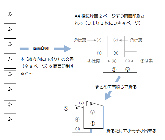 ※注4:「本(縦方向に谷/山折り)」での印刷は総ページ数によって