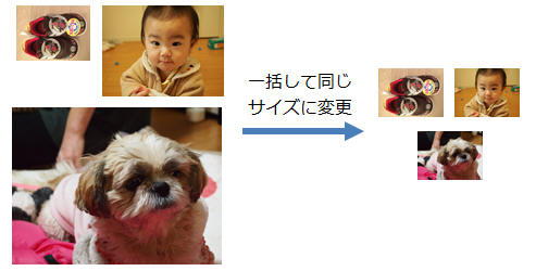 写真のサイズを一括して同じに変更するといった操作では写真の縦横比が重要です。縦横比が「固定」で「同じ