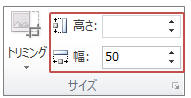 「書式」タブの右端「サイズ」で「高さ」または「幅」のどちらかを入力