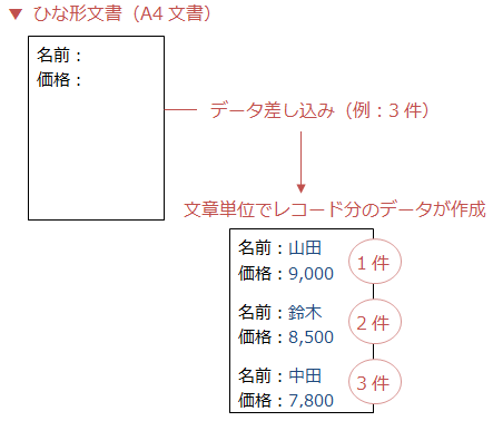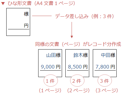 レター … メイン文書と同様のページがレコード分作成される(1ページに1レコードずつ差し込み)