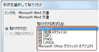 Word2010:「形式を選択して貼り付け」における画像形式の違い |