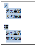 文字列を入力し選択する(インデント等は設定しなくてOK)
