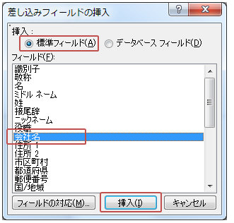 Word2010 差し込み印刷:「 フィールドの対応」の使い方 |