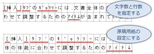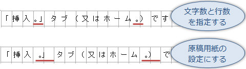 文字数・行数を指定した文書で利用しますが、いくつかの違いがあります。