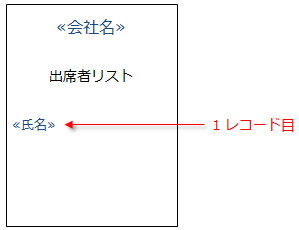 ★ 通常はこのままですが(1ページに1レコード)今回は同じ会社の場合は次レコード(氏名)も連続挿入するので次のように操作します。