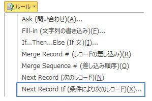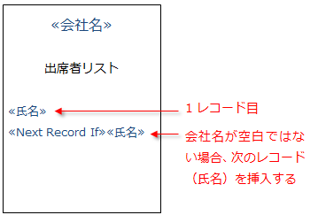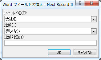 ◎フィールドコードは { NextIf {MergeField 会社名} <> ""