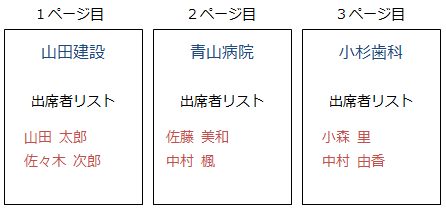 差し込み印刷で1ページにつき同じ種類のデータを差し込む方法をご紹介します。例えば各ページには同じ会社のメンバーのみを差し込むといった場合です。