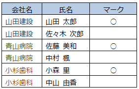 例:マークが○の氏名を差し込む(○じゃない場合は飛ばして次へ)
