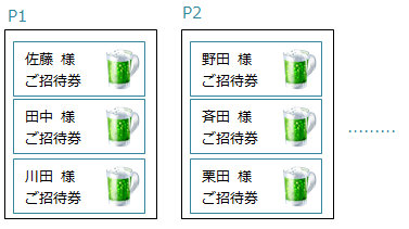 1ページにつき、1レコード差し込まれます。次のページに次のレコードが自動的に差し込まれます。(※1メイン文書に複数のテキストボックスを挿入すると同じレコードになる)