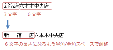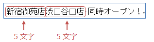 5文字」と「渋谷店 3文字」の場合次のようになります。