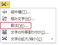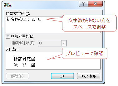 ↓割注ダイアログでスペースを入力するとプレビューを見ながら調整できます