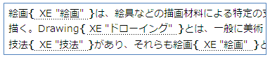 索引を登録すると {XE "索引" \y "さくいん"} のようなフィールド↓が挿入されます。