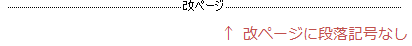 さて、仕様の変更により以前のトラブル↑は回避できますが、ページ区切りにも段落記号が存在するようになったため今度は次のような現象が起こるようになりました。