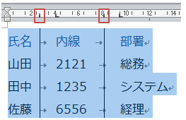 Wordのタブの種類にある「縦棒」は文字列を配置するために使うものではありません。