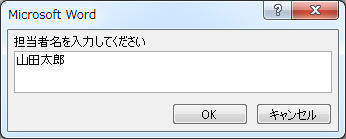 作成担当は毎回同じとは限らないため、メイン文書には入力せず「担当」「外線」というブックマークのみメイン文書に挿入しておき、ASKフィールドによって入力されたデータをこのブックマークに格納することで担当者や外線番号を