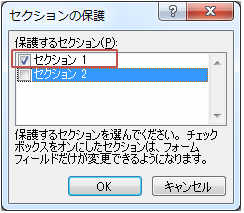 「保護するセクション」で「セクション1」のみチェックを入れ「OK」をクリック