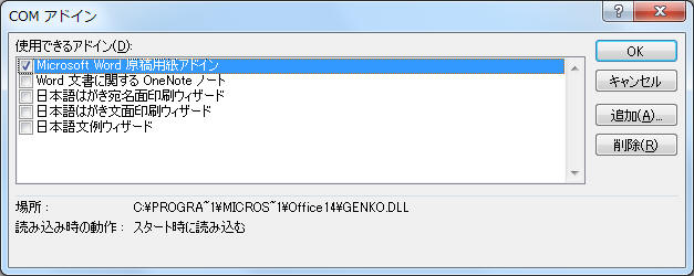 Word原稿用紙アドイン」のチェックをONに戻しましょう。)