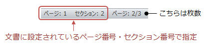 セクションで区切られている場合はP○S○の形で指定します。こちらもステータスバーに表示されているページ番号・セクション番号の順に指定します。