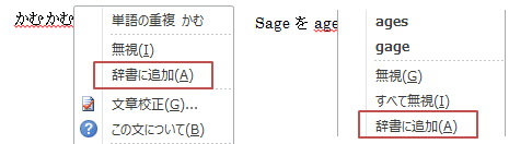赤線が引かれた箇所で右クリックし「辞書に追加」をクリック