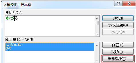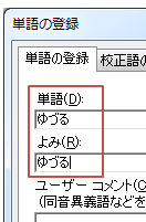 「単語登録」をクリックし「単語」「よみ」に単語を入力して「登録」をクリック