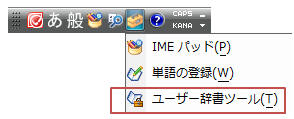 IMEツールバーの「ツール」ボタン−「単語の登録」をクリック