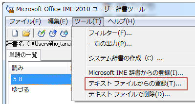 「ツール」−「テキストファイルからの登録」をクリック