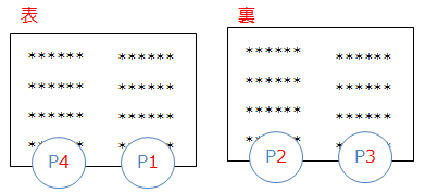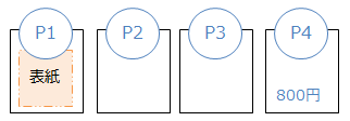 A3・横・本(縦方向に谷折り)にしてP1を表紙(P2-3は空白、P4が裏表紙)