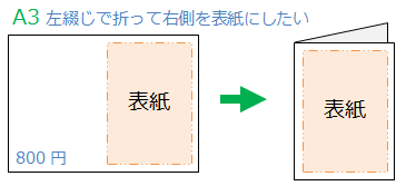 ◆ A3用紙を折って右を表紙にしたい(左綴じ)