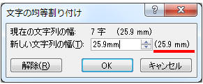 - 該当箇所で右クリック−「文字の均等割り付け」をクリックし、現在の均等割り付けを確認する