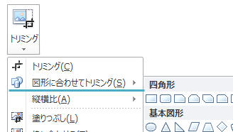 図を選択し「書式」タブ−「トリミング▼」から次のいずれかの操作を行います。