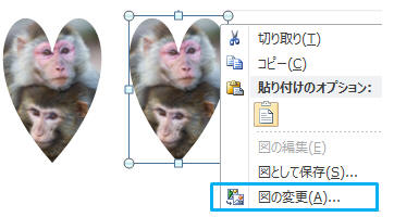 複製された写真を右クリックし「図の変更」をクリック