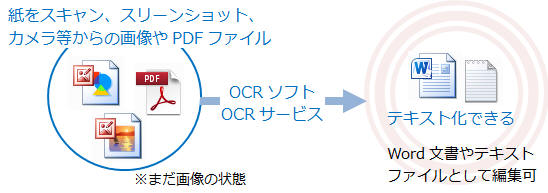 スキャンした画像やPDFをWordで編集できるようにする(テキスト文字列とする)には、それら画像を文字として認識させる(OCR処理)必要があります。 ここでは画像やPDFファイルを無料OCRを利用してテキスト化(Word等で編集できるようにする)する方法をご紹介します。