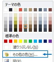 「図形(線)の塗りつぶし」から「その他の色」を選択(文字なら「フォントの色」から「その他の色」)